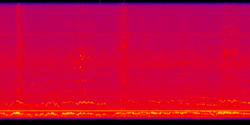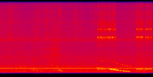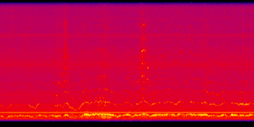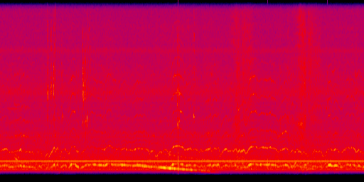 Enfin, est représenté sur la dernière ligne les spectrogrammes audio cette fois-ci du bruit ambiant. C'est sans conteste le paramètre le plus fiable pour déterminer l'activité des zones. Le bruit caractéristique généré par les avions de chasse lors des exercices militaires est bien identifié par l'algorithme.